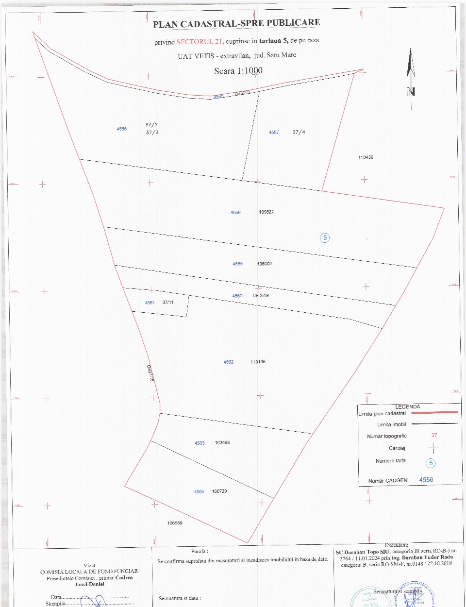 Oficiul de Cadastru și Publicitate Imobiliară Satu Mare, prestatorul autorizat, ing. Tudor Radu DĂRĂBAN, în colaborare cu Primăria Comunei Vetiș, anunță că, în data de 06.10.2025, în conformitate cu prevederile art. 11 alin. (2) lit. k) din Legea cadastrului și a publicității imobiliare nr. 7/1996, republicată, cu modificările și completările ulterioare, a fost realizată afișarea publică a documentelor tehnice ale cadastrului, întocmite în conformitate cu OUG nr. 35/2016, pentru următoarele sectoare cadastrale din unitatea administrativ-teritorială Vetiș, județul Satu Mare: